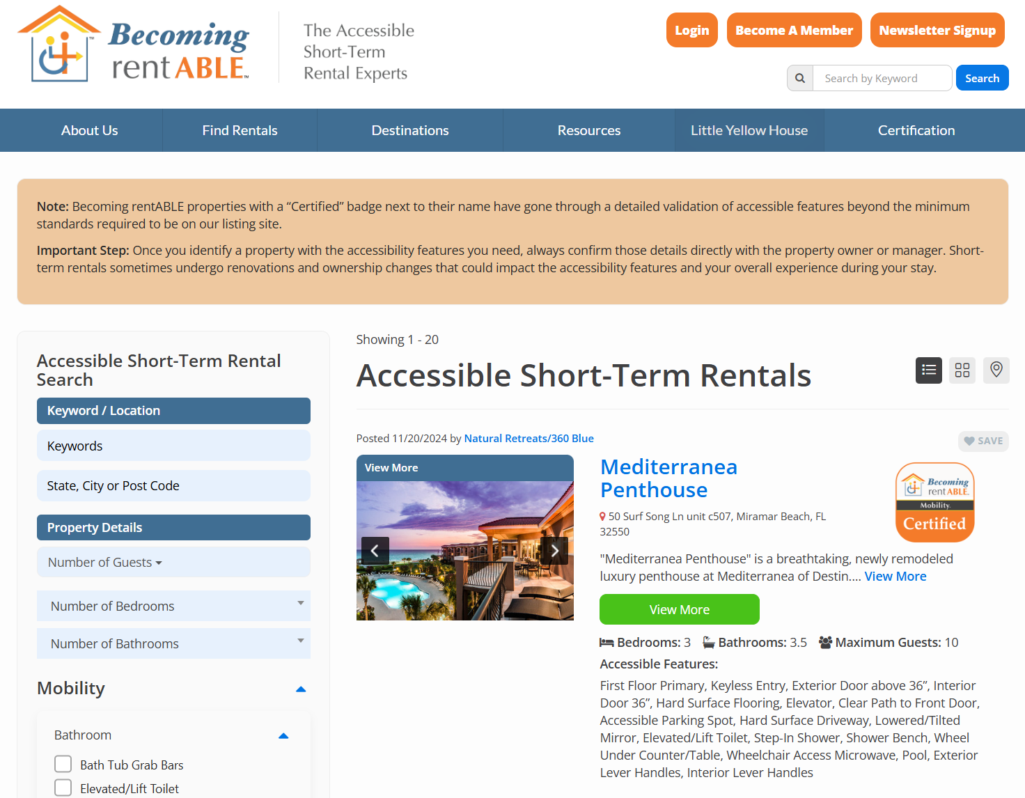 2021년 창업한 미국의 Becoming RentABLE은 베리어프리(Barrier-Free) 단기숙박 예약 플랫폼 스타트업이다. 미국/캐나다 숙소를 대상으로 한다. 자체 인증된 단기숙박 업체만을 제공하고 있다. (Phocuswire 기사보기)
