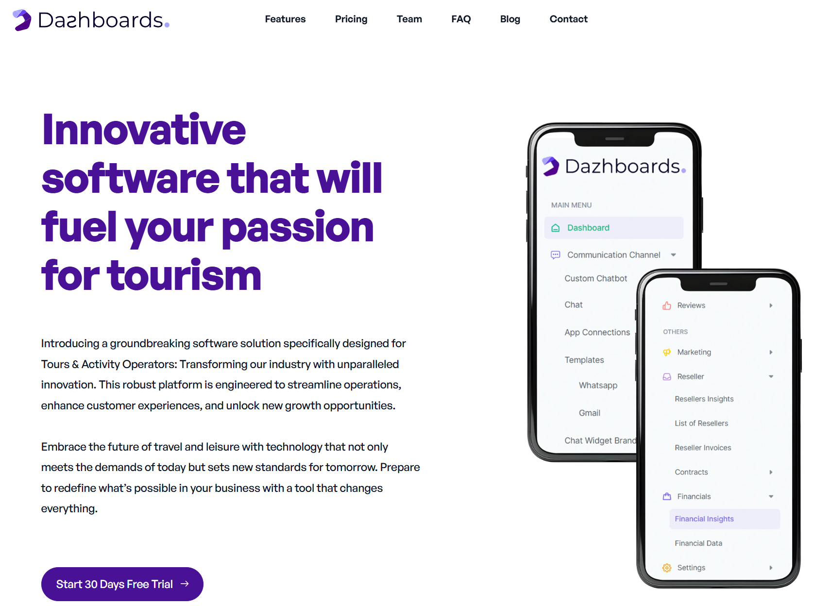 2024년 창업한 호주의 Dazhboards는 T&A 운영사를 위한 AI 기반의 비즈니스 인텔리전스 데시보드 솔루션을 제공하는 스타트업이다. 옵니채널상담, AI챗봇상담, 자동화리뷰응대, 대리점판매계약 관리, 상품 판매실적 분석등을 제공한다. (Phocuswire 기사보기)