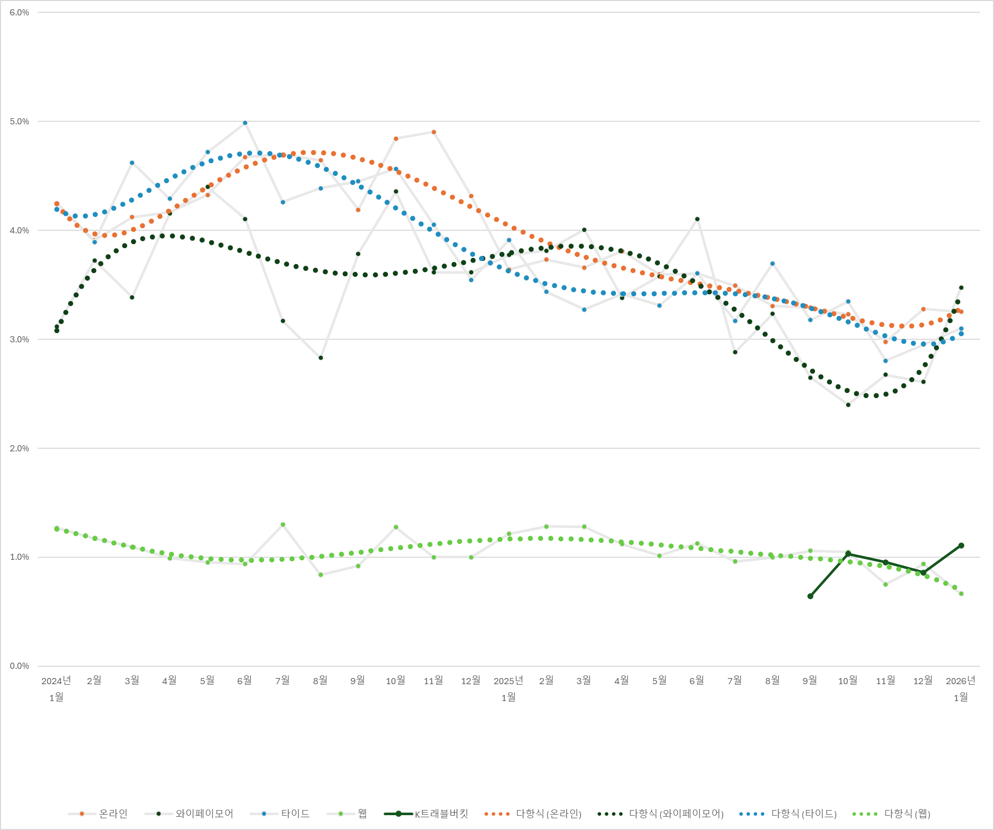 급반등한 와이페이모어와 함께 이제 당당하게 순위권에 올라온 K트래블버킷이 눈에 들어옵니다. 지난달 웹투어를 턱밑까지 추격했던 K트래블버킷은 1월에는 웹투어와 꽤 큰 차이를 보이고 있습니다. 1월은 웹투어의 실적 하락과 K트래블버킷의 상승이 우연히 겹쳐진 결과 이겠지만, 지난 2년간 지속적으로 조금씩 조금씩 하락하고 있는 웹투어의 2월 실적은 K트래블버킷과의 자리바꿈이 굳어지는 달이 될지도 모르겠습니다.