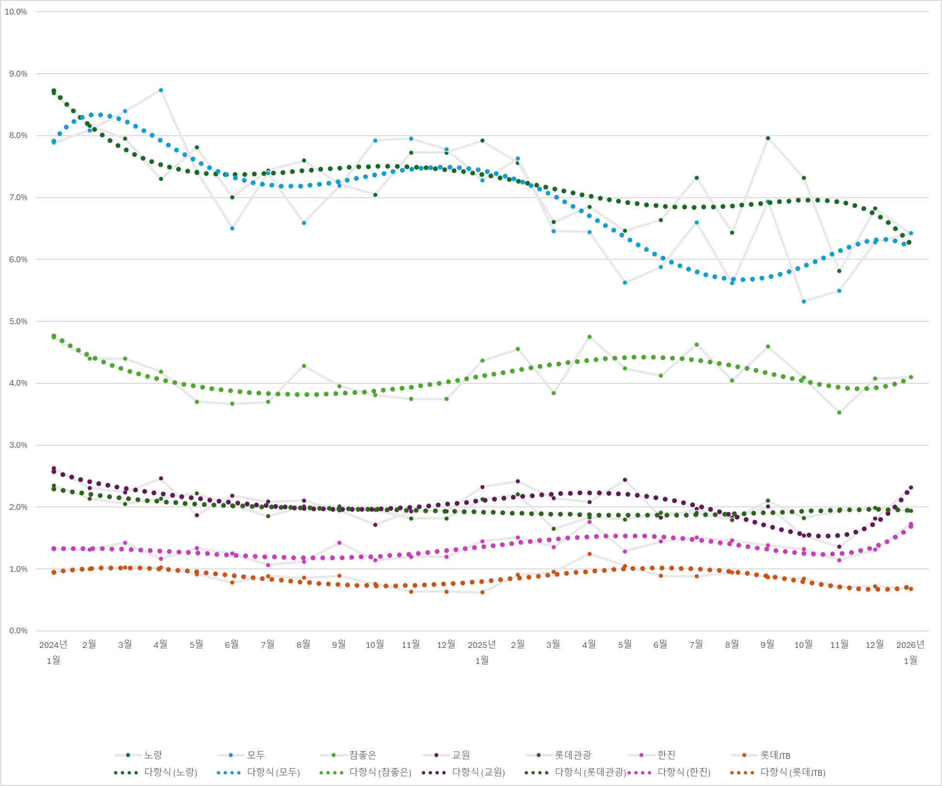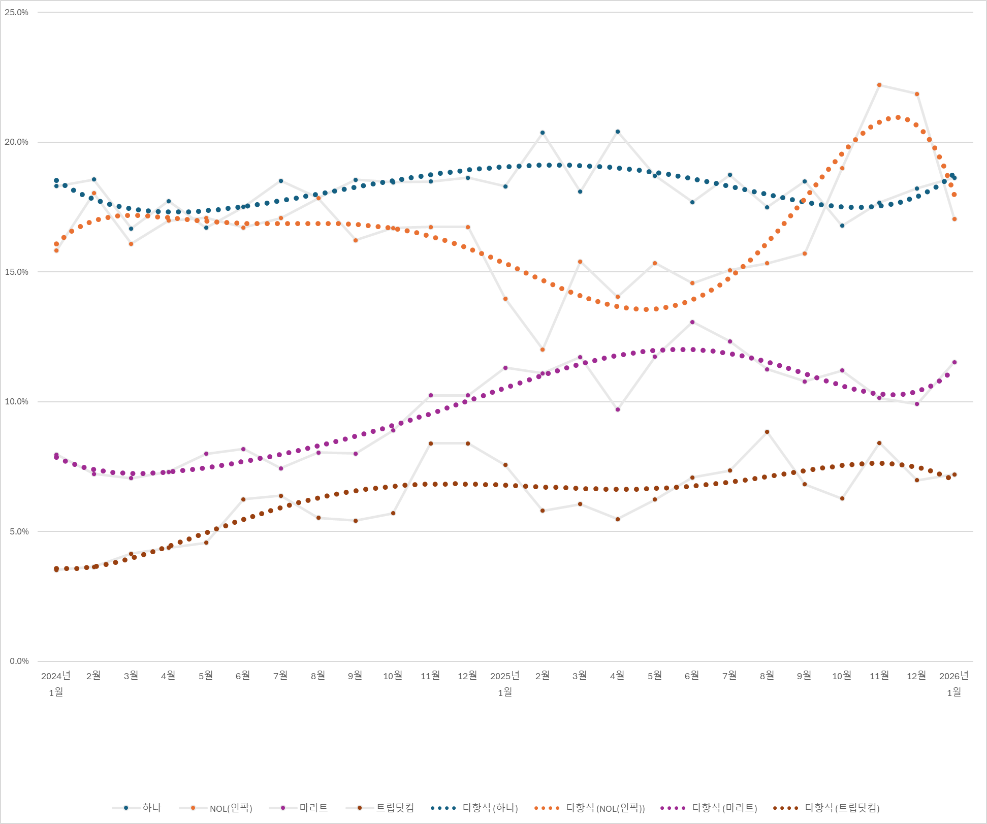 이달의 1위는 하나투어가 차지했습니다. 상대적으로 NOL(인팍)의 하락과 함께 마리트의 상승이 눈에 들어옵니다. MS 기준이기에 별것 아닌 것 같지만 하나투어로서는 2024년 1월 이후 가장 높은 수치(1,346억)입니다. 지난 11월 NOL에서 기록한 1,536억에는 미치지 못한다고 하겠지만 그냥 NOL의 25년 11월, 12월 성적이 그냥 미친 숫자인 것이지 하나투어의 실적이 낮은 것이 아닙니다.