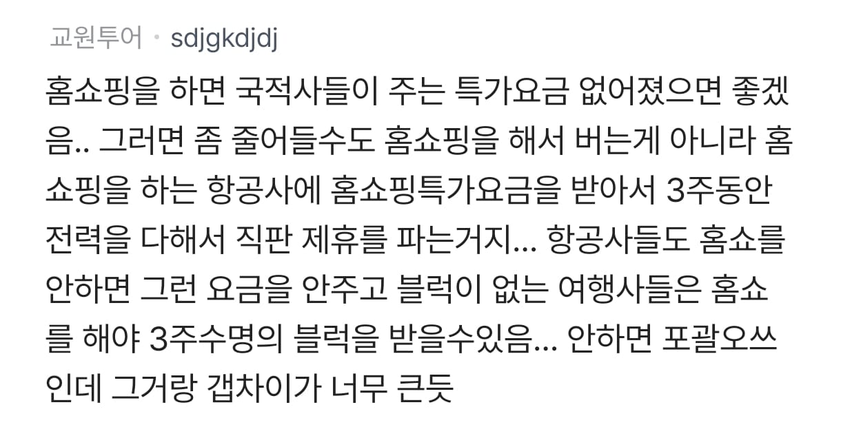 애초에 항공사에서 먼저 홈쇼 해달라고 주는 경우도 있으니 ㅋㅋㅋㅋ 그런 랜드나 발권처도 있고