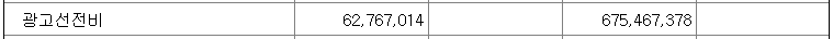 6.7억에서 6.2천만원 수준으로 광고비를 삭감한 대신 판매촉진비가 살짝 늘어났습니다. 8천만원 수준에서 1억이 되었군요.