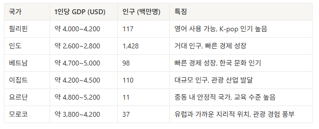 - 2024년 기준, 인당 국민소득 5,000달러 내외의 국가 리스트