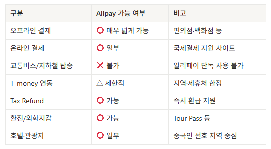 - 외국인 관광객은 알리페이 APP 하나만 들고 한국에 오면, 관광이 아니라 불편함 없는 생활을 할 수 있다.